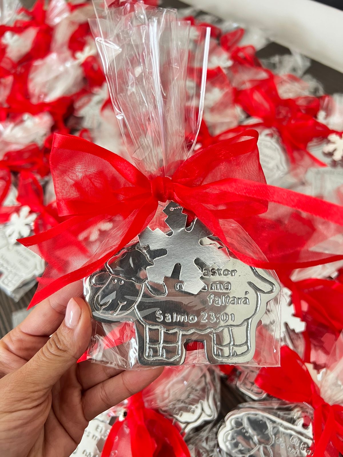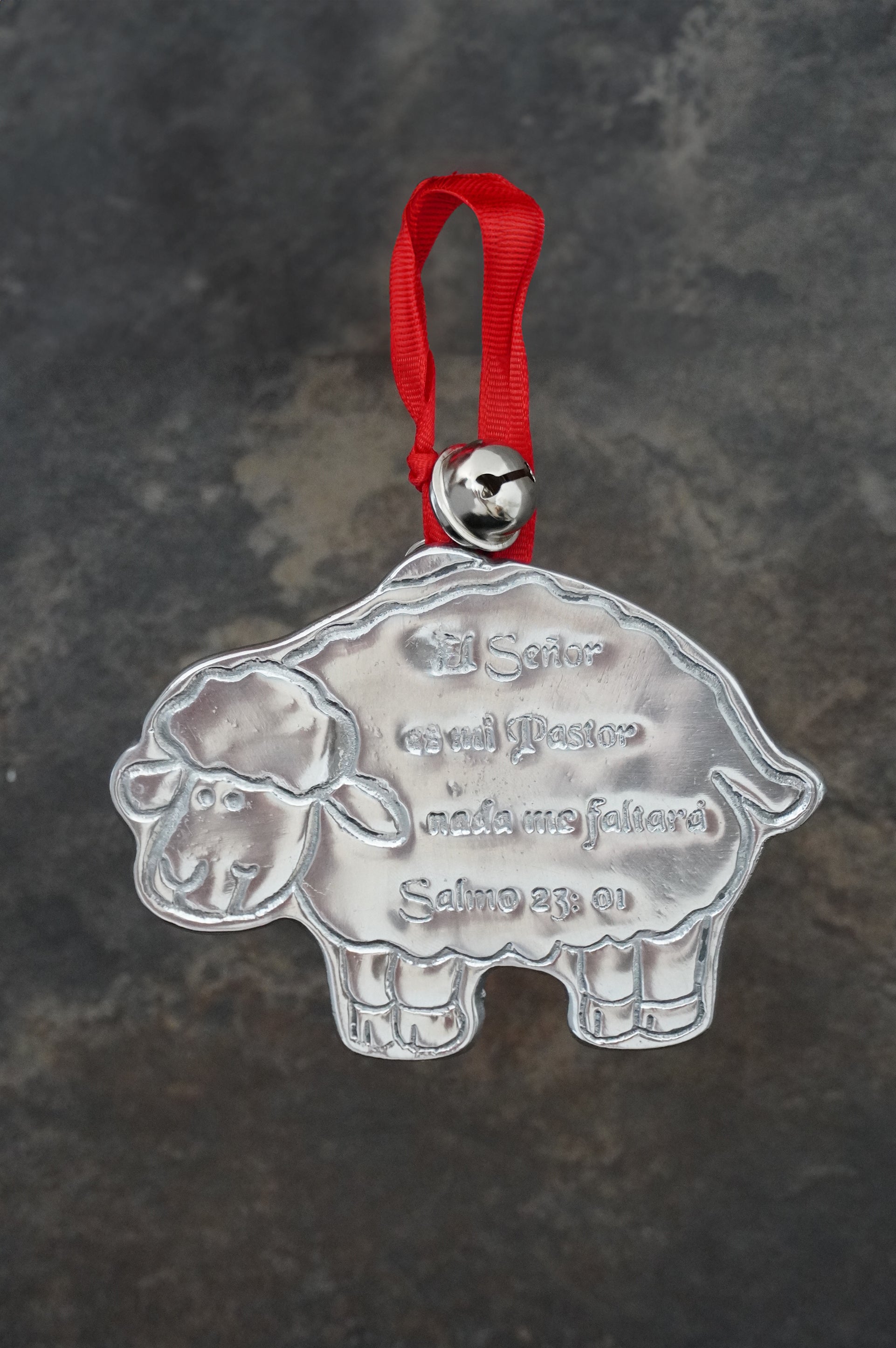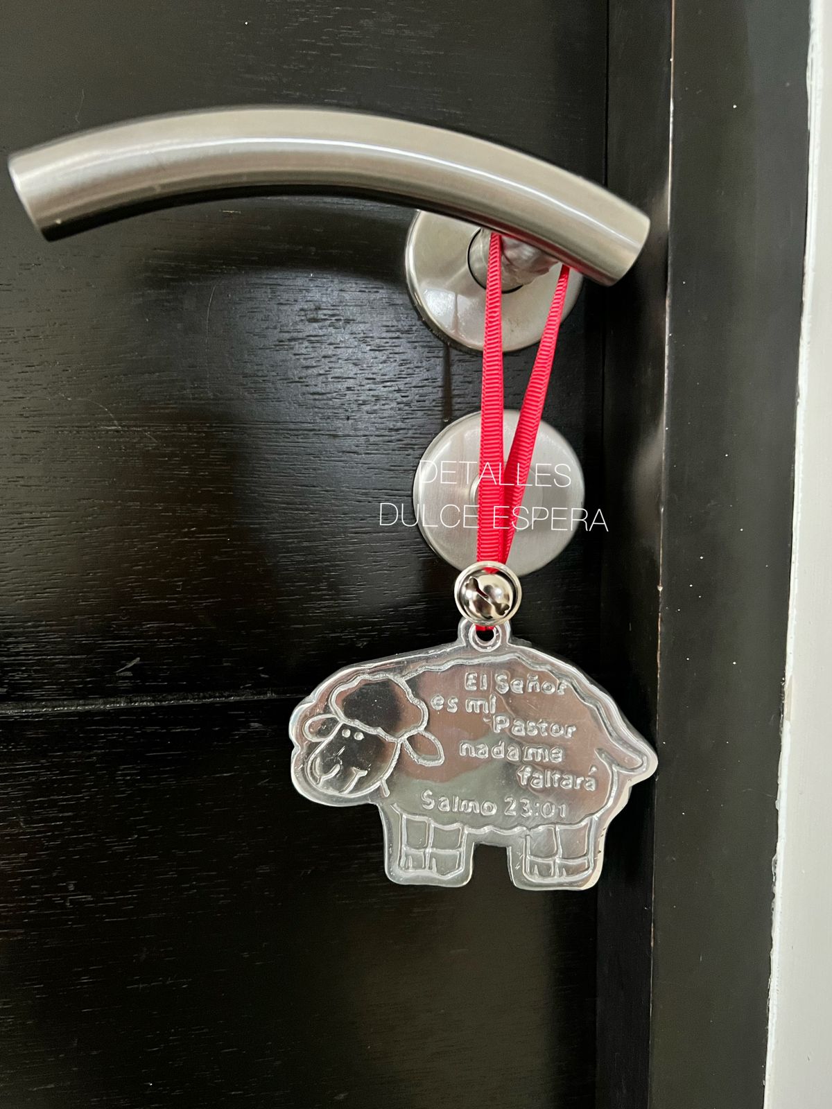 Hermoso borreguito de pewter grabado con el Salmo 23, un detalle especial para regalar en bautizos, primeras comuniones, confirmaciones o cualquier ocasión significativa. Cada pieza se entrega cuidadosamente presentada en una bolsa de celofán, con listón y tarjeta personalizada.