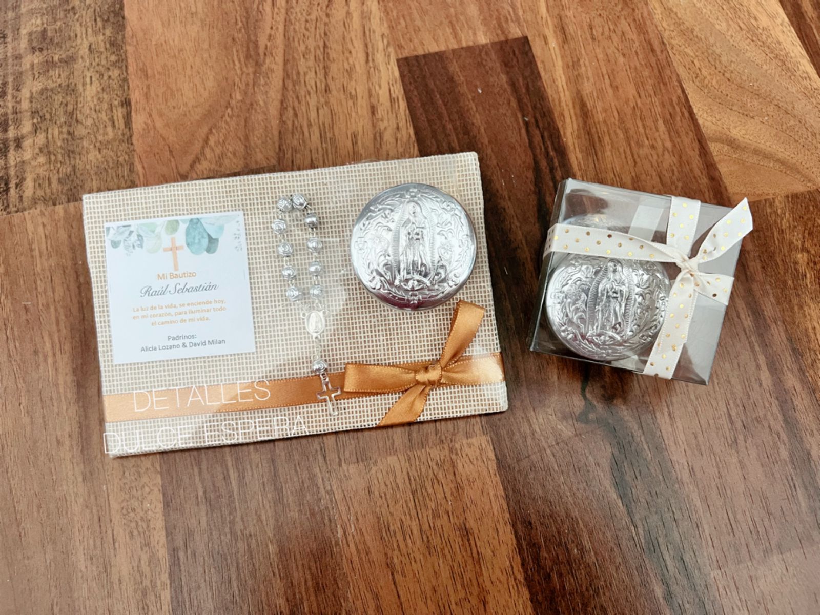 Un detalle práctico y elegante que puedes llevar siempre contigo. Este artículo multifuncional se puede usar como pastillero, alhajero o porta rosario, ideal para cualquier ocasión.