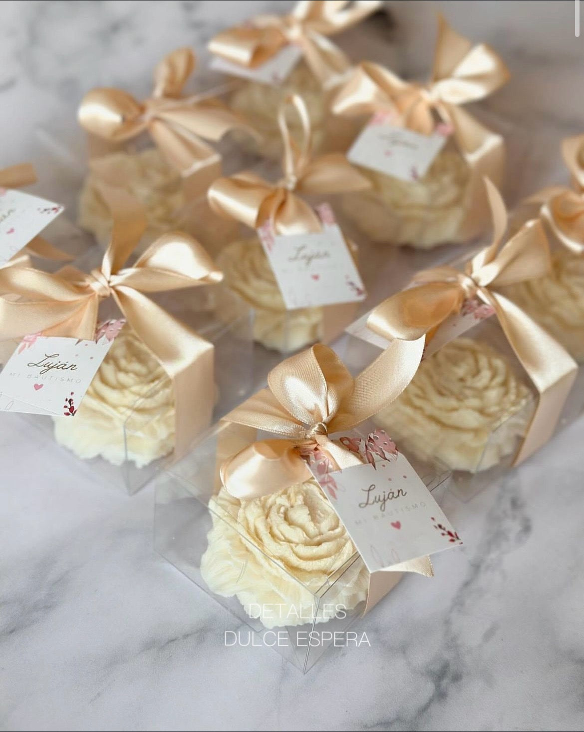 Delicadas velitas en forma de peonias con un dulce aroma que perfuma sutilmente el ambiente. Ideales como recuerdo para bodas, despedidas de soltera, bautizos o cualquier evento especial. Su diseño elegante y fragancia encantadora las convierten en un obsequio inolvidable.